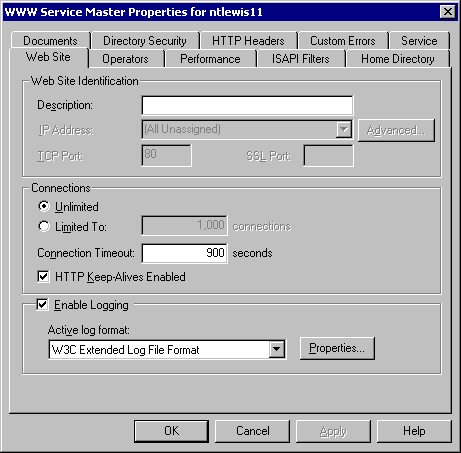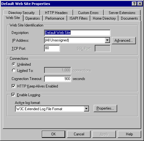 Configuring a single IIS web site to support Analog is similar to configuring the entire server.  Right click on the web site you'd like to configure, and select Properties to bring up the web site Properties page.