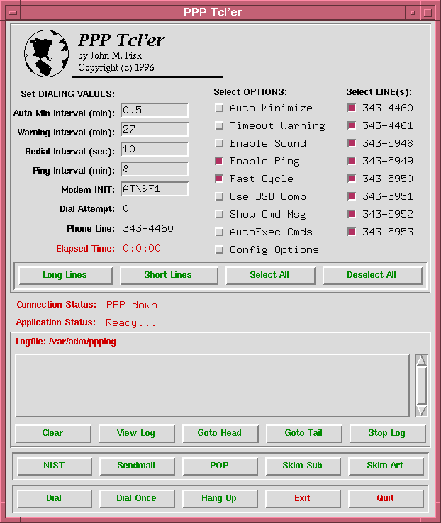 I've been using a series of BASH shell scripts to set up a PPP connection but after school ended in June, I really wanted to create a Tcl/Tk front end for all of this stuff. The features that I wanted included: