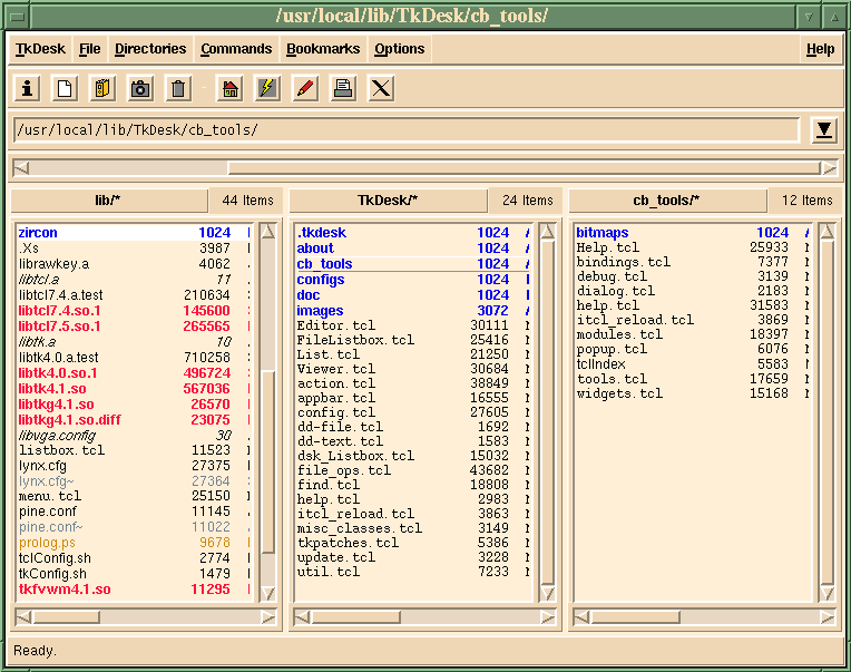 Here is a link to a screen-shot showing a somewhat customized TkDesk main window:
