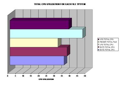 All of the file systems performed well in this area with the exception of ext3. I am not sure what could cause such an overhead for ext3 over all of the other file systems tested.