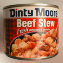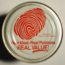 But its Dinty Moore's finger that we're talking about here. It was there the last time I bought a can, a big red fingerprint right on the lid, but it's gone from the new one. The story behind that print might have been interesting, but it too is not in evidence anywhere.