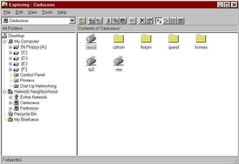 I won't go into great detail as to how we did this: there are numerous excellent (and plenty of not-so-excellent...) references on setting up Win95 boxes. In brief, however, this is what we did: