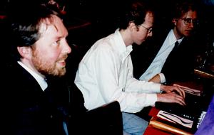 guy in the middle is Matthew Hunt, President of the Linux Users of NY