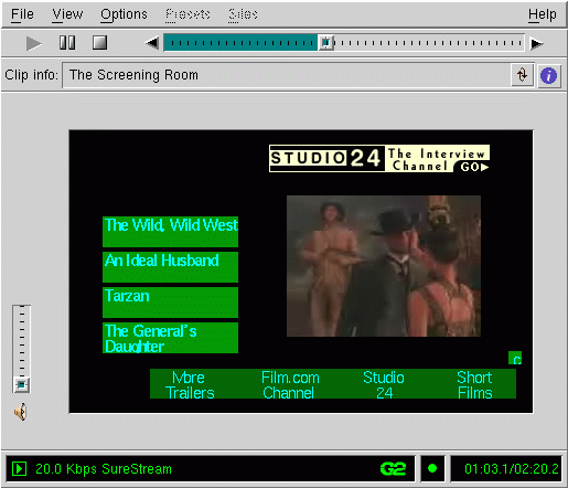 The G2 Player, running a clip from the Wild, Wild West.  Note that the video