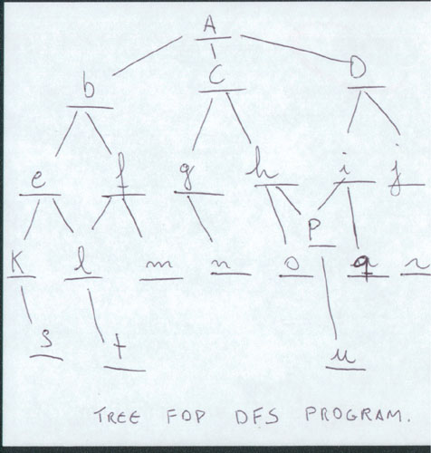 This program allows you to find a solution path from the START point to some GOAL. The DFS algorithm is pretty simple so implement, since it is a recursive algorithm. What DFS does is go through the child of each node in a sequential manner, therefore even though it is an easy way to implement a search algorithm, it is not time efficient.