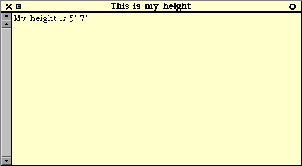 (Workspace new contents: 'My height is 5'' 7"') openLabel:
