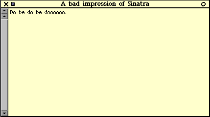 self mySing: 'Do be do be doooooo.' withTitle: 'A bad impression
