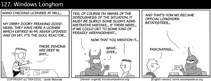 All Ecol cartoons are at tira.escomposlinux.org (Spanish), comic.escomposlinux.org (English) and http://tira.puntbarra.com/ (Catalan). The Catalan version is translated by the people who run the site; only a few episodes are currently available.