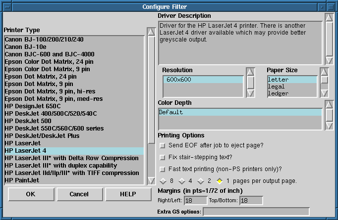 The printer configuration tool (printtool) maintains /etc/printcap, print spool directories, and print filters. The filters allow you to print many different types of files, including:
