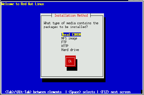 You booted from the diskette in your boxed set and are installing from the Red Hat Linux files that you have previously copied to a local hard drive. If you select this method, you'll next see the Select Partition dialog: go to the section called Identify Disk Partition to Install From.