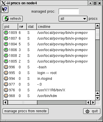 If you click on the "manage procs from remote" button a new window will come up (the remote-procs windows) displaying the process currently migrated to this host.