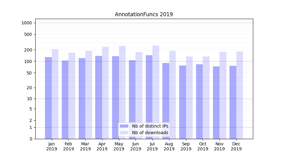 AnnotationFuncs_2019_stats.tab| Month | Nb of distinct IPs | Nb of downloads |