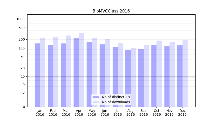 BioMVCClass_2016_stats.tab| Month | Nb of distinct IPs | Nb of downloads |