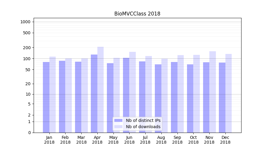 BioMVCClass_2018_stats.tab| Month | Nb of distinct IPs | Nb of downloads |