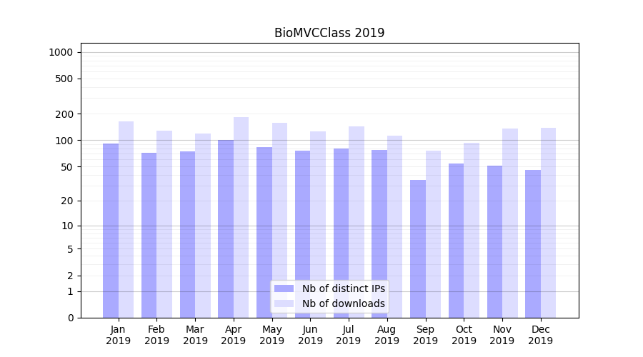 BioMVCClass_2019_stats.tab| Month | Nb of distinct IPs | Nb of downloads |