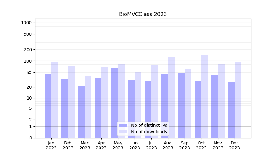 BioMVCClass_2023_stats.tab| Month | Nb of distinct IPs | Nb of downloads |
