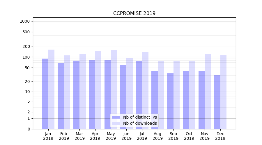 CCPROMISE_2019_stats.tab| Month | Nb of distinct IPs | Nb of downloads |