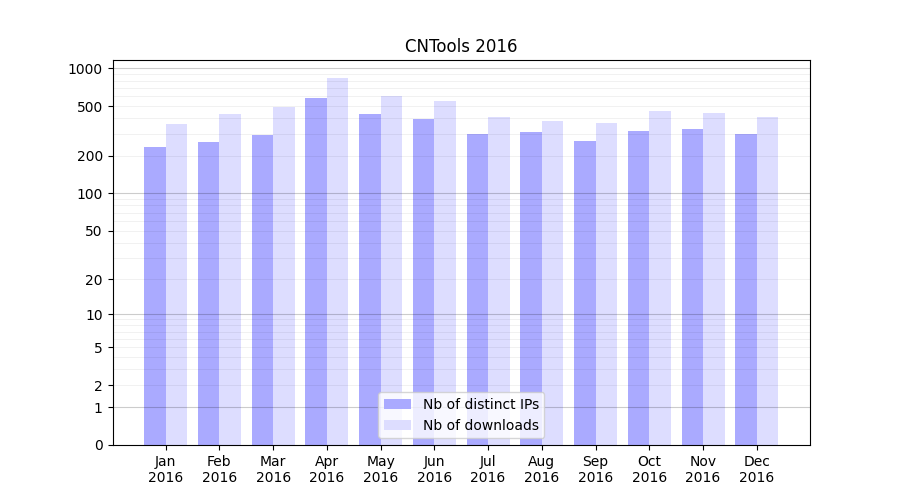 Number of downloads for software package CNTools, year by year, from 2025 back to 2014 (years with no downloads are omitted):