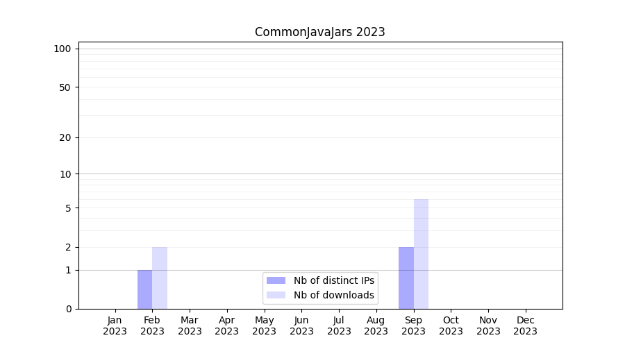 Number of downloads for software package CommonJavaJars, year by year, from 2025 back to 2014 (years with no downloads are omitted):