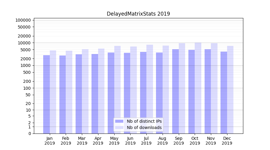 DelayedMatrixStats_2019_stats.tab| Month | Nb of distinct IPs | Nb of downloads |