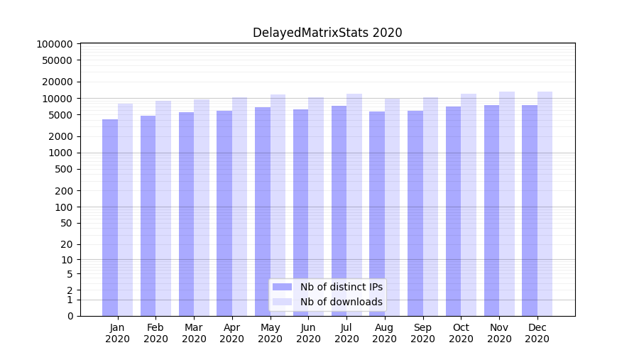 DelayedMatrixStats_2020_stats.tab| Month | Nb of distinct IPs | Nb of downloads |
