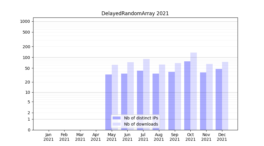 DelayedRandomArray_2021_stats.tab| Month | Nb of distinct IPs | Nb of downloads |