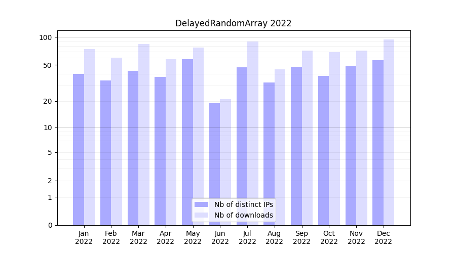 DelayedRandomArray_2022_stats.tab| Month | Nb of distinct IPs | Nb of downloads |