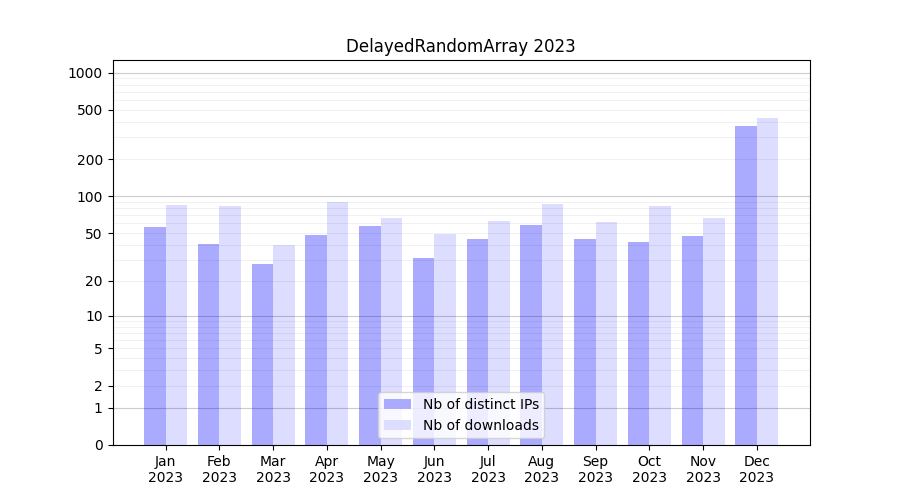 DelayedRandomArray_2023_stats.tab| Month | Nb of distinct IPs | Nb of downloads |