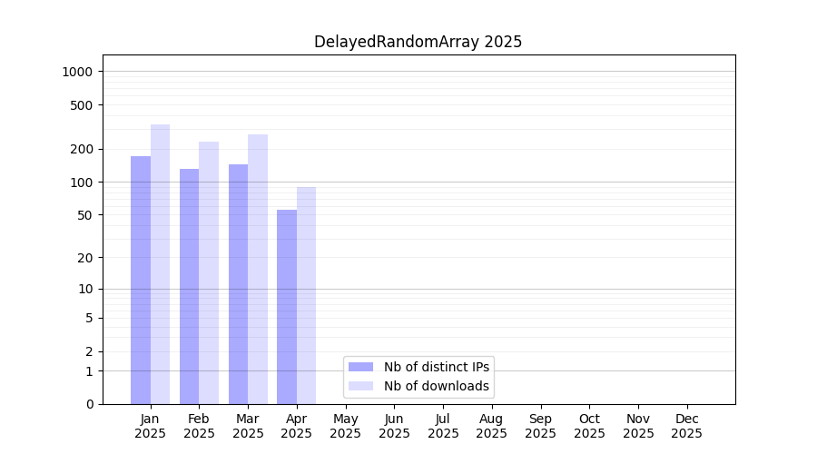 DelayedRandomArray_2025_stats.tab| Month | Nb of distinct IPs | Nb of downloads |