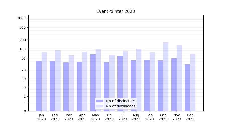 EventPointer_2023_stats.tab| Month | Nb of distinct IPs | Nb of downloads |