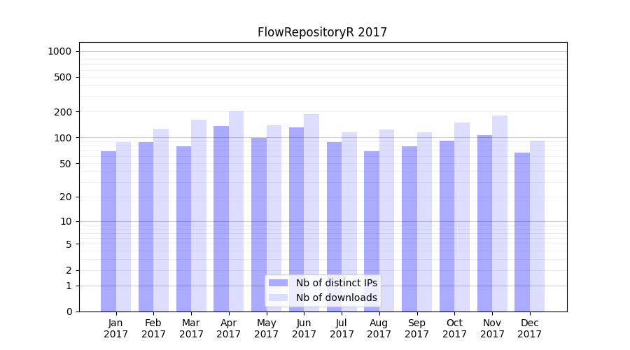 FlowRepositoryR_2017_stats.tab| Month | Nb of distinct IPs | Nb of downloads |