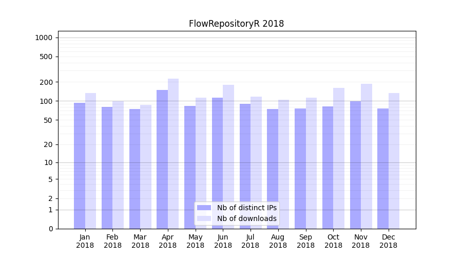 FlowRepositoryR_2018_stats.tab| Month | Nb of distinct IPs | Nb of downloads |