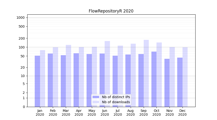 FlowRepositoryR_2020_stats.tab| Month | Nb of distinct IPs | Nb of downloads |