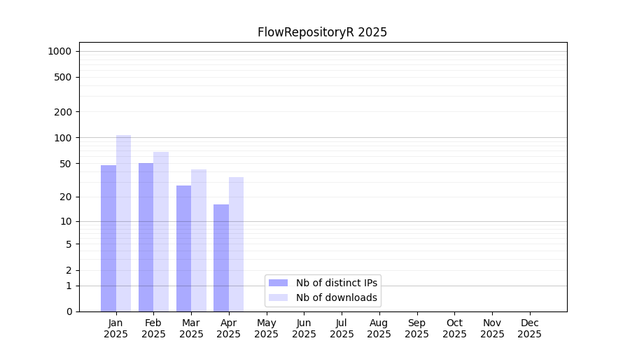 FlowRepositoryR_2025_stats.tab| Month | Nb of distinct IPs | Nb of downloads |