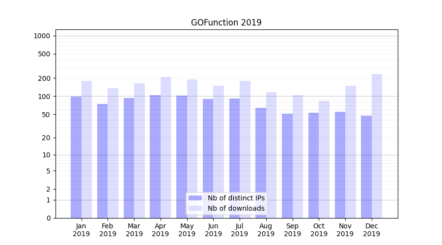 GOFunction_2019_stats.tab| Month | Nb of distinct IPs | Nb of downloads |