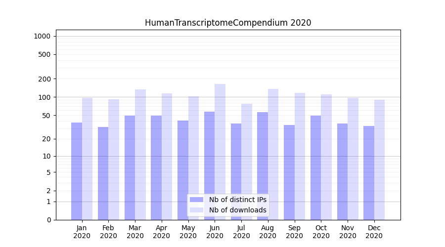 HumanTranscriptomeCompendium_2020_stats.tab| Month | Nb of distinct IPs | Nb of downloads |