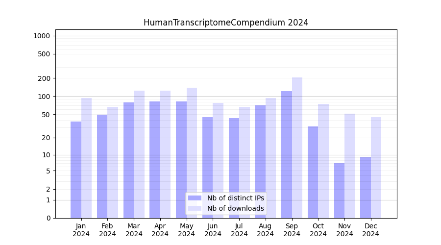 HumanTranscriptomeCompendium_2024_stats.tab| Month | Nb of distinct IPs | Nb of downloads |