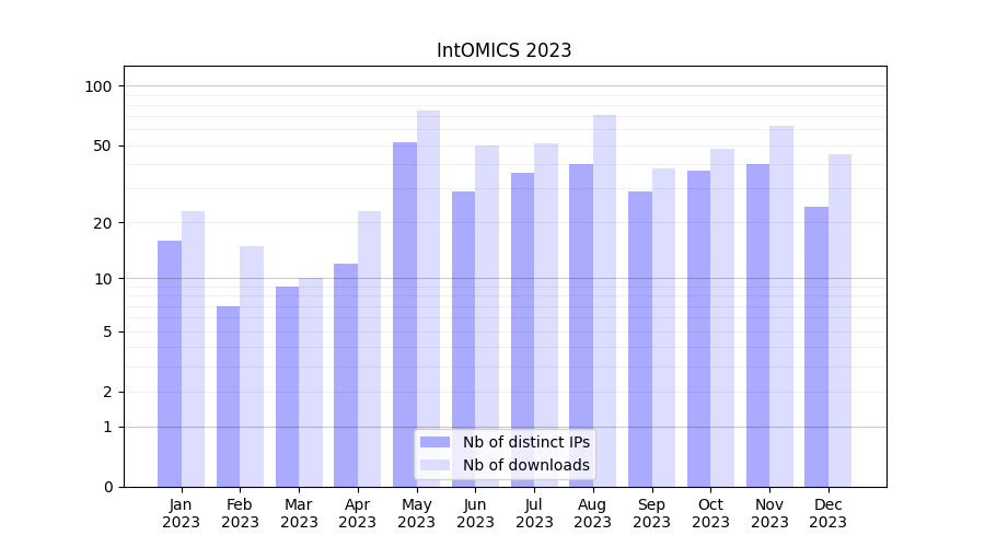 IntOMICS_2023_stats.tab| Month | Nb of distinct IPs | Nb of downloads |