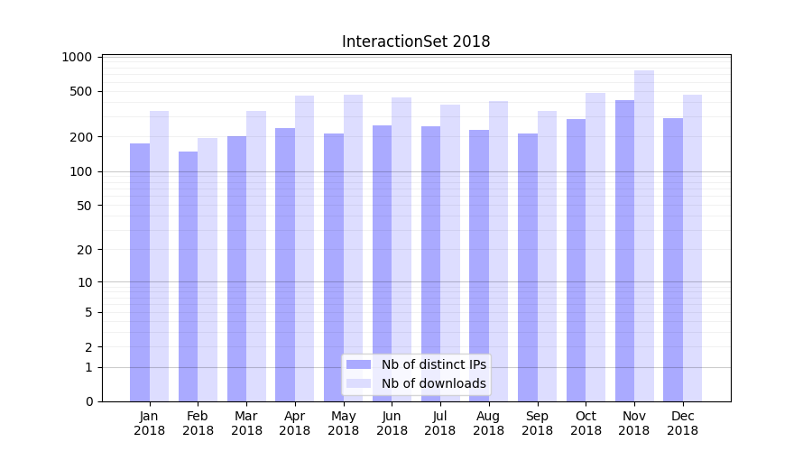 InteractionSet_2018_stats.tab| Month | Nb of distinct IPs | Nb of downloads |