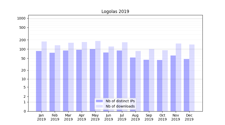 Logolas_2019_stats.tab| Month | Nb of distinct IPs | Nb of downloads |