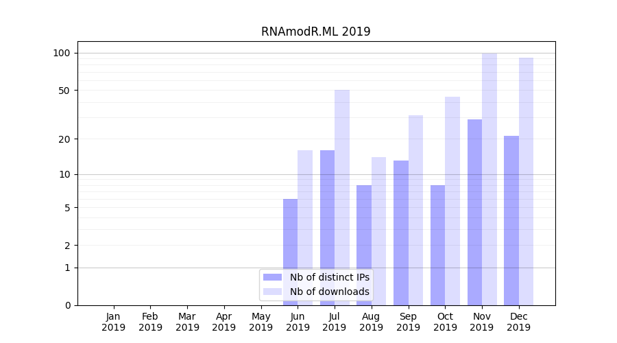 RNAmodR.ML_2019_stats.tab| Month | Nb of distinct IPs | Nb of downloads |
