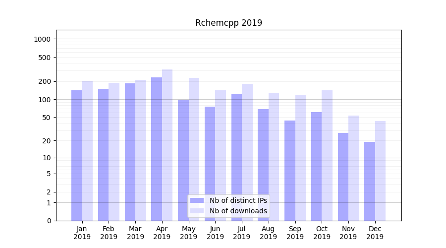 Rchemcpp_2019_stats.tab| Month | Nb of distinct IPs | Nb of downloads |