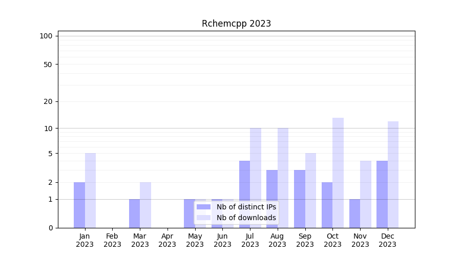 Rchemcpp_2023_stats.tab| Month | Nb of distinct IPs | Nb of downloads |