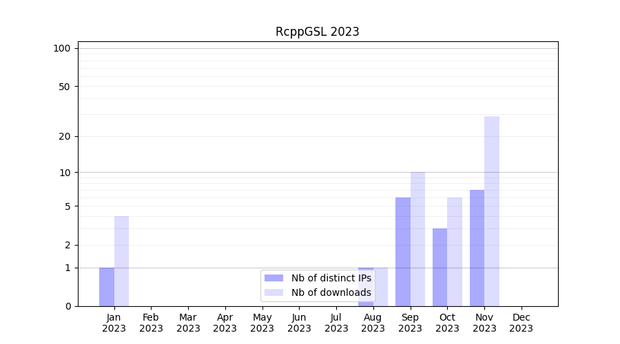 RcppGSL_2023_stats.tab| Month | Nb of distinct IPs | Nb of downloads |