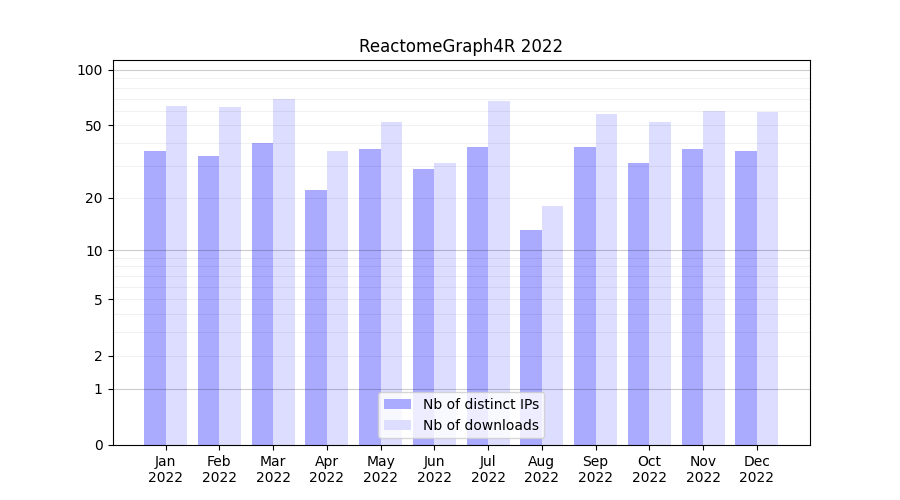 ReactomeGraph4R_2022_stats.tab| Month | Nb of distinct IPs | Nb of downloads |