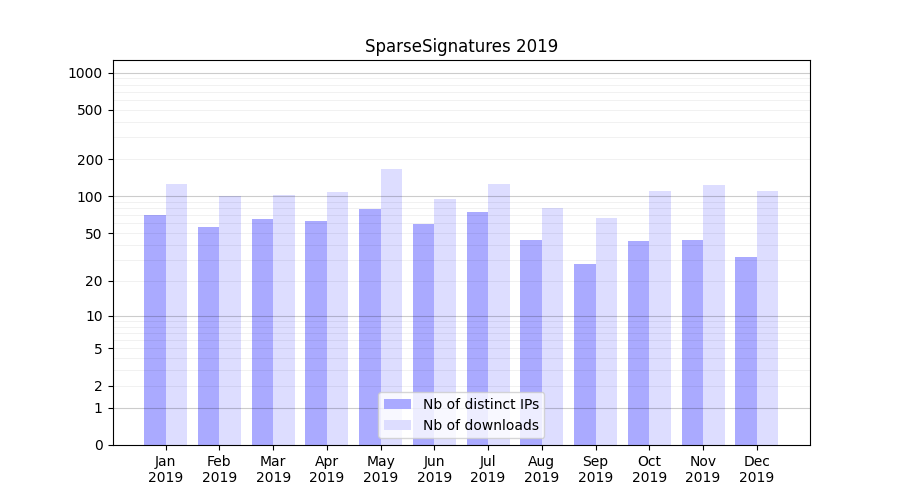 SparseSignatures_2019_stats.tab| Month | Nb of distinct IPs | Nb of downloads |