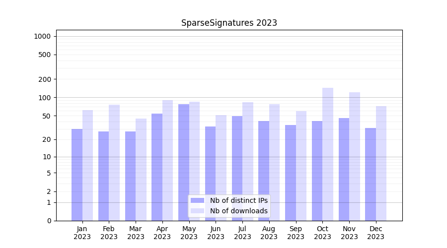 SparseSignatures_2023_stats.tab| Month | Nb of distinct IPs | Nb of downloads |