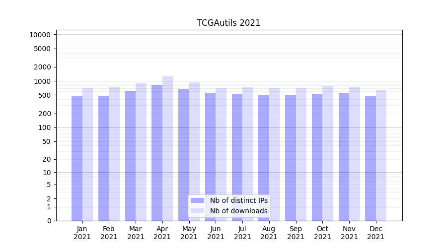 TCGAutils_2021_stats.tab| Month | Nb of distinct IPs | Nb of downloads |