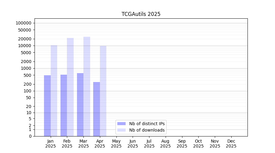 TCGAutils_2025_stats.tab| Month | Nb of distinct IPs | Nb of downloads |