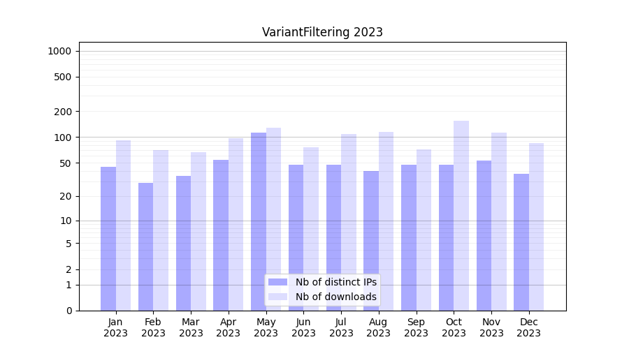 VariantFiltering_2023_stats.tab| Month | Nb of distinct IPs | Nb of downloads |